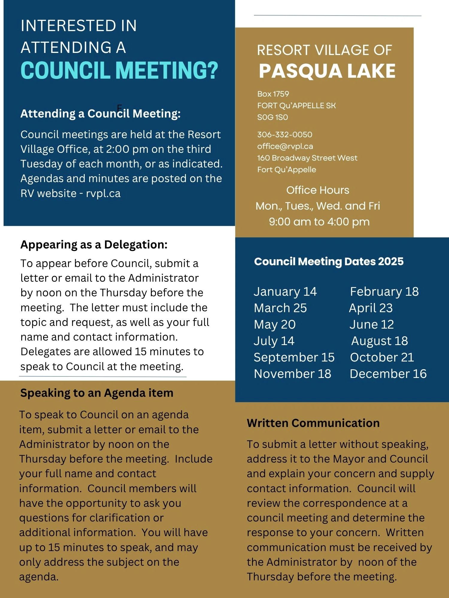 Until our new bylaws are adopted by our council and approved by the Ministry of Government Relations, the zoning and building bylaws and permit applications of the RM will be our guiding documents. Applications and permit approvals, however, will be handled through the Resort Village office.
